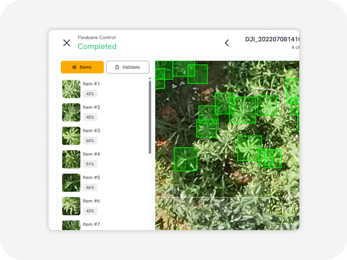 Our platform uses powerful AI and computer vision to analyze images/videos in minutes. It accurately detects weed and invasive species locations—learning over time to improve precision